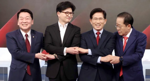 | | | 「国民の力」の大統領選候補者たち。左から安哲秀、韓東勳、金文洙、洪準杓候補