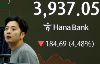 5日午前、前日終値から4%以上急落し4000を割ったKOSPI指数 |