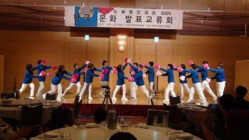 ㊤婦人会・韓国語教室生徒たちによる公演のもよう(民団香川県本部提供)