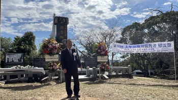 第30回となる「大牟田徴用犠牲者慰霊祭」が10月26日、大牟田市の甘木公園にて執り行われ、約80人が参席した。 式典には、主催者である在日本大韓民国民団福岡県地方本部の李鍾出団長をはじめ、主管の大牟田支部の金英子団長、駐福岡大韓民国総領事館の朴晉奭(パク・ジンソク)領事、関好孝・大牟田市長など、多方面からの関係者が参加し、犠牲者の冥福を祈った。 慰霊碑は、戦時下に日本へ徴用され、三井三池炭鉱などで労働を強いられた韓半島出身者を追悼するため、1995年に建立された。土地は大牟田市が無償で提供、建設費は三井系企業が負担した。碑のそばには、当時社宅の押し入れの壁に残されていた、当事者たちの望郷の思いを刻んだ記念碑も設置され、戦争の歴史を今に伝えている。 式典の中で李鍾出団長は、「この地で犠牲となった人々の苦しみと願いを決して忘れてはならない。歴史を記憶し続けることが、平和な未来を築く礎になる」と語り、参列者と共に祈りを捧げた。参加者たちは献花や黙とうを通じ、犠牲となった人たちへの追悼と平和への誓いを新たにした。地域と在日同胞社会が協力し、この記憶を次世代に引き継いでいく重要性が改めて確認された式典となった。(福岡=李将浩) 10月26日、主催者あいさつを述べる李鍾出団長(民団福岡大牟田支部提供) |