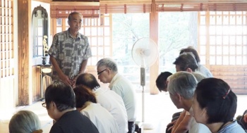 本堂で法要が行われた後、世話人らがあいさつした。金昌鎮さんは、「浮島丸の悲劇から80年経っても状況が何も変わっていない。進捗のいくつかを挙げることはできても、根本的なところで遺骨の返還がもう15年近く行われていない点が残念だ」と悲痛な胸の内を明かした。