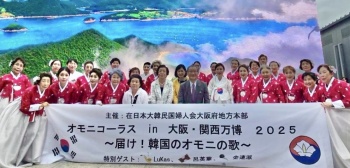 在日本大韓民国婦人会大阪府地方本部(朴米子会長)のオモニコーラス部が9月26日、大阪・関西万博に出場、ポップアップステージでハーモニーを披露した。特別ゲストとしてルカス(サックス)、呂英華(チャング)、金連淑(民謡)の各氏が招かれ舞台に華を添えた。出場時に次のように紹介された。