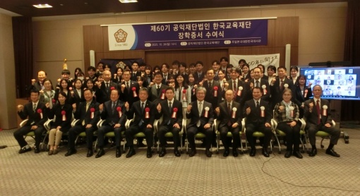 韓国教育財団(徐東湖理事長)は10月26日、都内の駐日韓国大使館で第60回奨学証書授与式を開き、奨学金を受給する学生・生徒のほか、関係者らが出席した。今回は応募者の水準が高かったと評価され、奨学生の将来に期待を込めるとともに、面接審査委員からはさらなる支援をしたいという意見も出された。