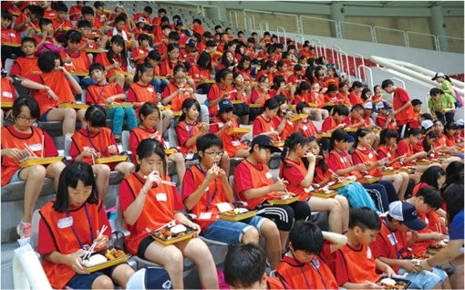 | | 《한솥》은 한국을 찾은 재일동포 어린이잼버리 참가자들에게 도시락을 지원했다. (2016.8) |