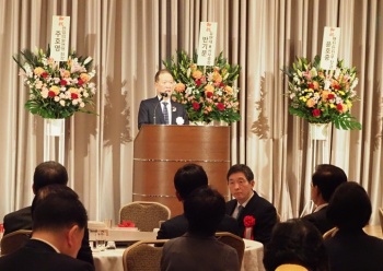 河村建夫・日韓親善協会中央会会長は来賓祝辞の中で、「今日は民団の新年会に続き、韓人会の新年会にも参加させて頂いている。大使館からも同じように大使が参加しているのも、それだけ現在の日韓両国の関係が緊密である証しだと感じる。前政権から引き継がれたシャトル外交が持続している流れの中で、草の根のつながりや経済・文化の自由な交流を止めないよう親善協会でも努力したい」と述べた。