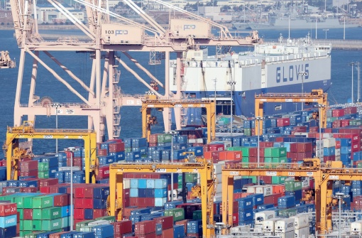 | | | 京畿道・平沢港で船積みを待つ輸出用コンテナ |