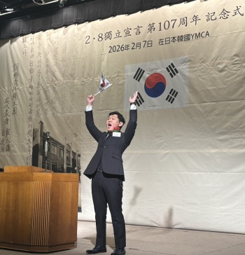 はじめに、主催者を代表して開式辞を述べた同YMCAの呉理事長は、「2・8独立宣言は3・1独立運動や臨時政府樹立の導火線となり、我が民族に自主独立の希望を与えた歴史的事件である」と強調した。さらに、本年で創立120周年を迎えた同YMCAの歩みに触れ、「歴史認識の相違は依然として残るが、和解と共生に向けた交流が切実な時代状況にある」とし、未来志向の韓日関係の重要性を説いた。続いて祝辞を述べた金利中・民団中央本部団長(代読)は、本年が民団創団80周年の節目であることに言及。不安定な国際情勢の中、「107年前にこの場所から始まった宣言の意を忠実に引き継ぎ、先烈たちの高潔な精神と人生を次世代に絶えず伝えていく」とし、使命感を表明した。