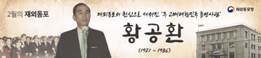 재외동포청(청장 김경협)은 2026년 2월 ‘이달의 재외동포’로 故 황공환(黄孔煥, 1921-1986) 전 고베상은 이사장을 선정했다고 밝혔다. 황 이사장은 민족금융기관인 고베상은을 이끌며 주(駐)고베한국총영사관 청사 건립을 주도하는 등 재일동포의 권익 신장과 대한민국 발전에 헌신했다.