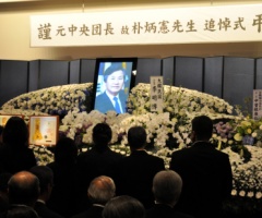 統一日報特別講演会中、民団中央本部 鄭進団長挨拶